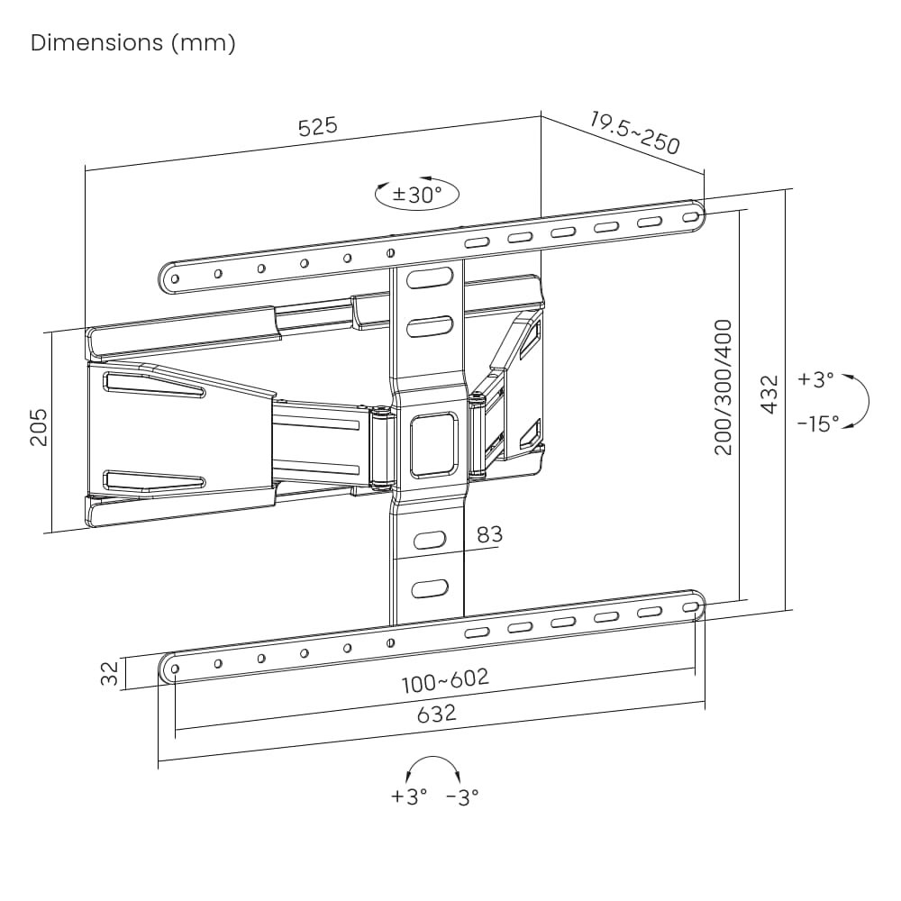 podporuje většinu 43„ - 90“ LCD televizorů