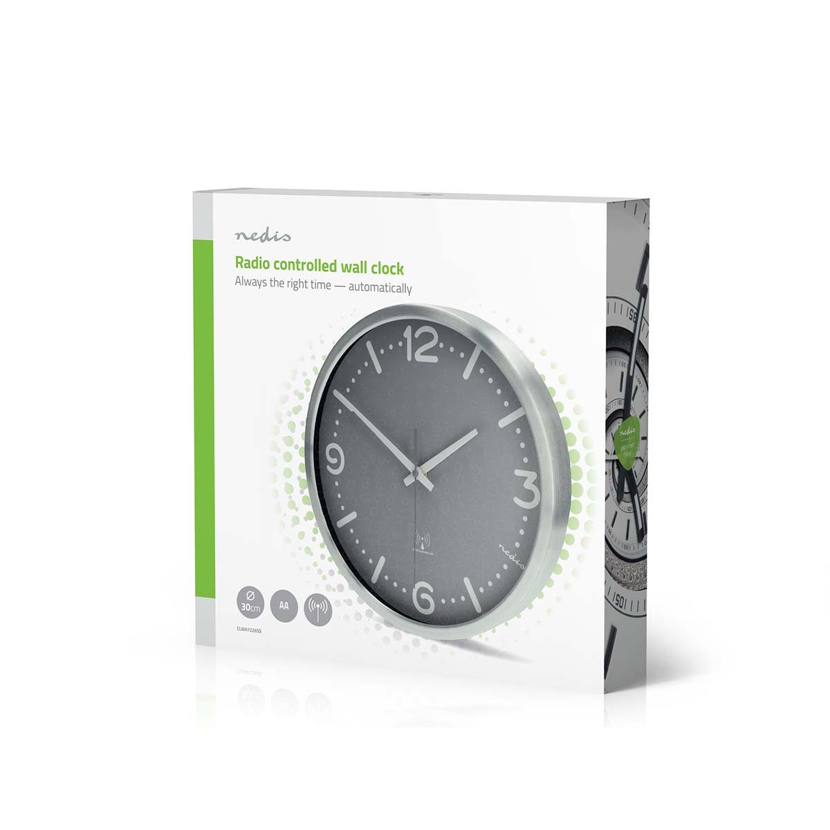 Nástěnné hodiny NEDIS CLWA7226SS, tichý chod, DCF radio synchronizace, nerez, 30cm